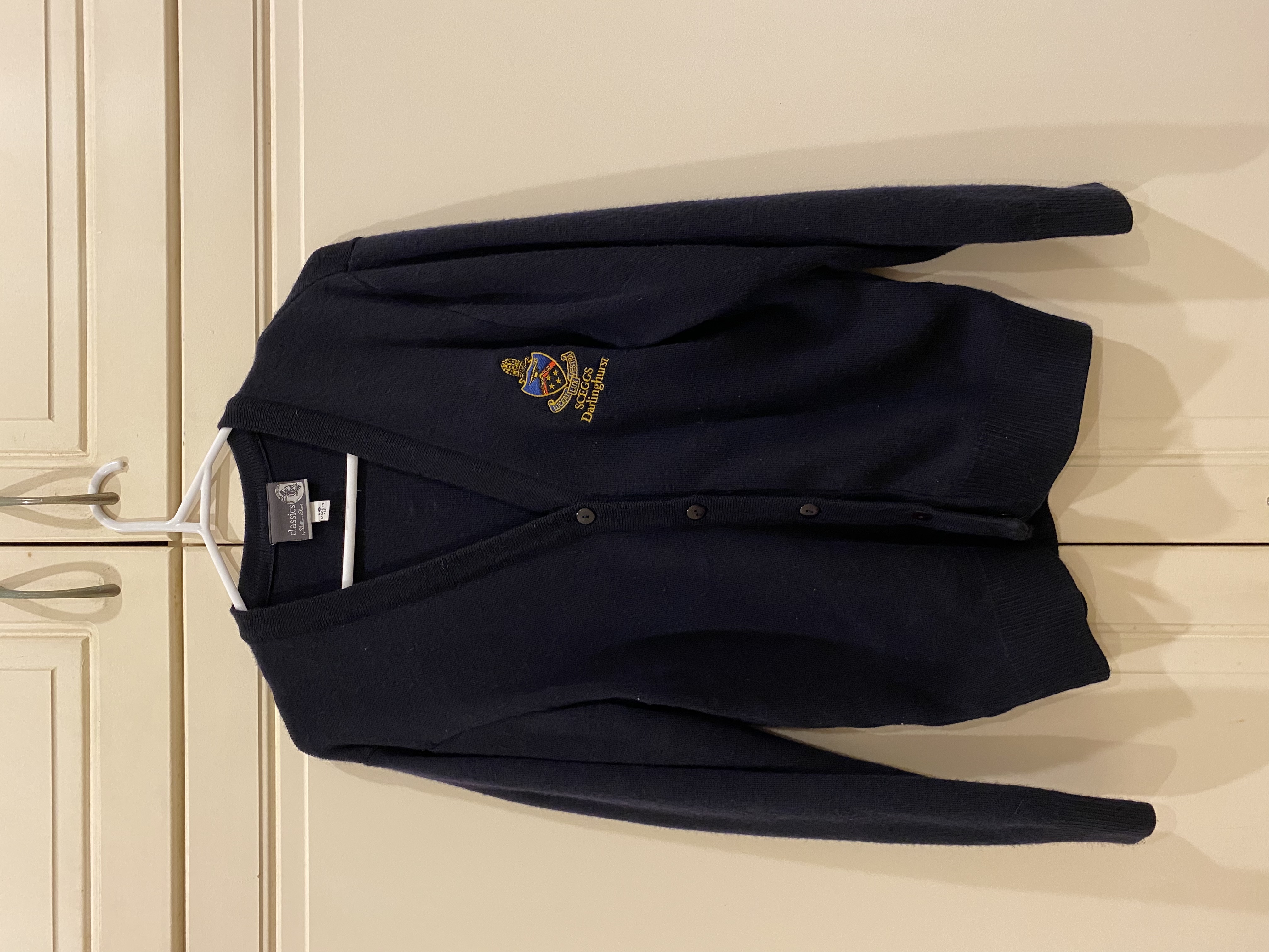 Year 11 & 12 Navy blue woollen jumper with red trim. Size...