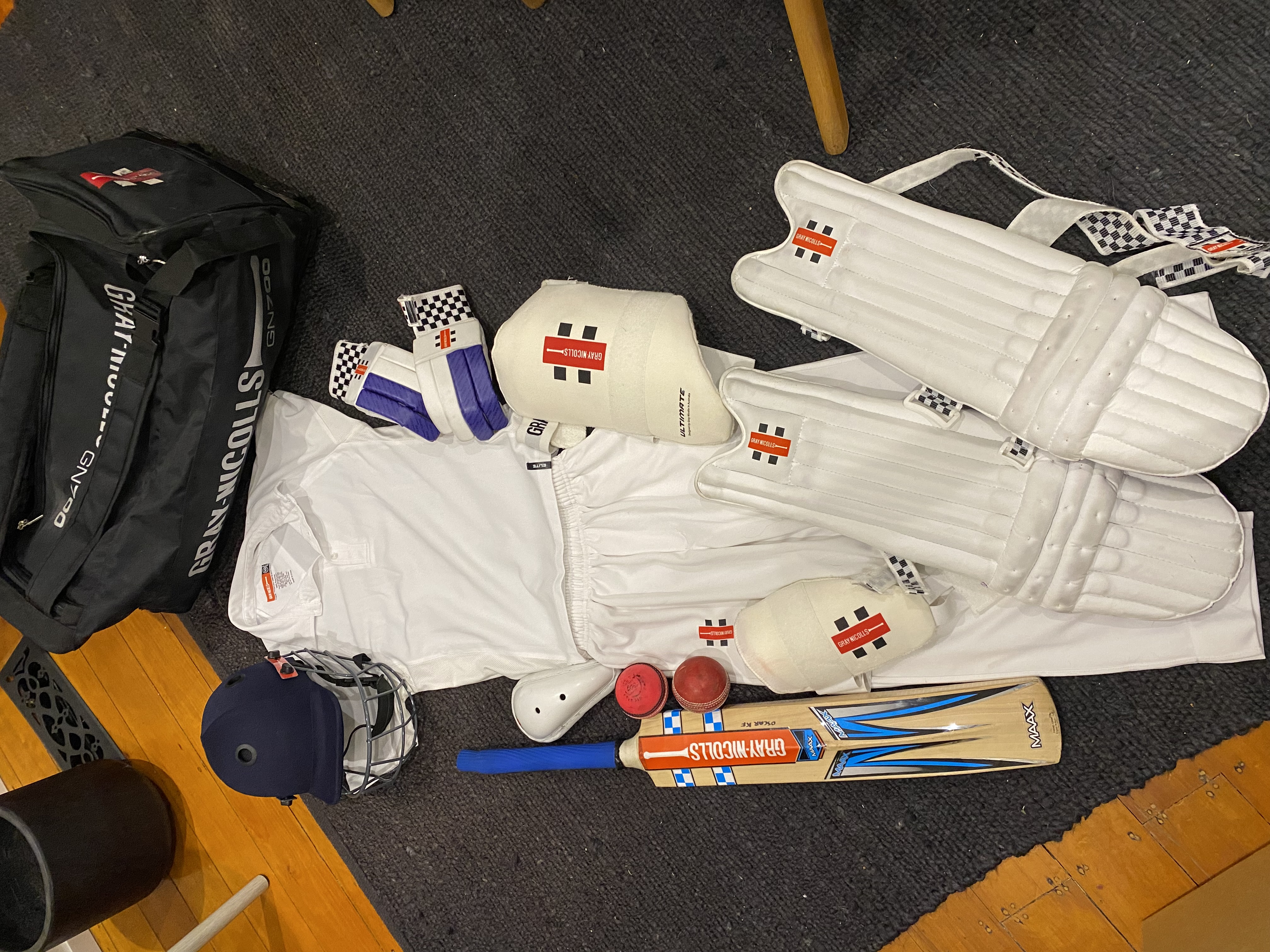 size 10 junior cricket kit includes helmet, bat, gloves, ba...