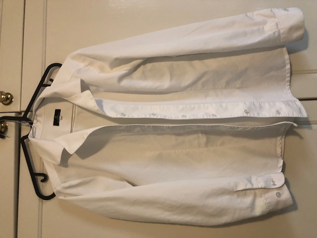Size 10- Good condition, very light stain on right arm cuff